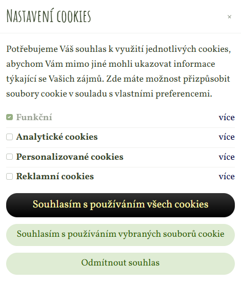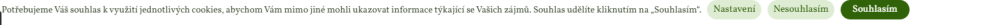 Při první návštěvě webu se zobrazí banner s žádostí o souhlas s použitím cookies.